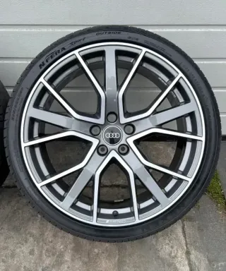 Angeboten wird einer neuwertiger (Felgen neu, Reifen Demontage Neuwagen) originaler Audi Sommerradsatz in 20 Zoll.Optionale Hinweise zum Zustand: