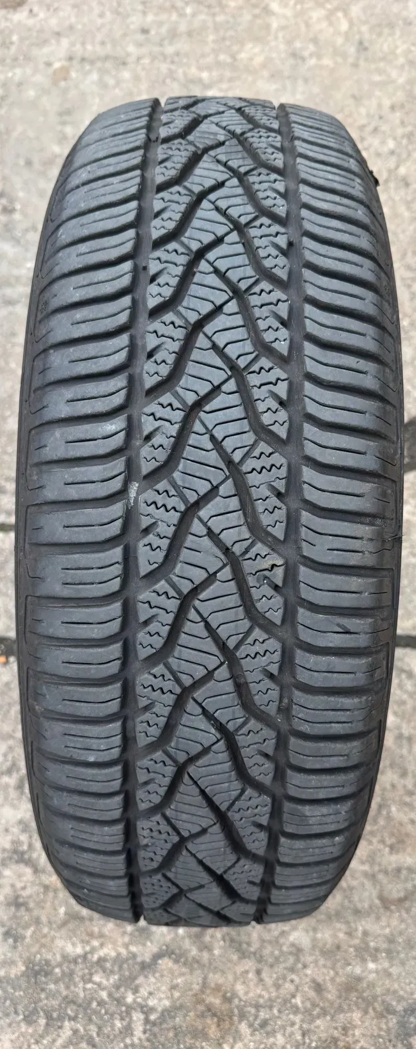 Angeboten wird EIN gebrauchter Allwetterreifen / Ganzjahresreifen (mit Schneeflockensymbol 3PMFS) von Barum in 15 Zoll.Differenzbesteuert: