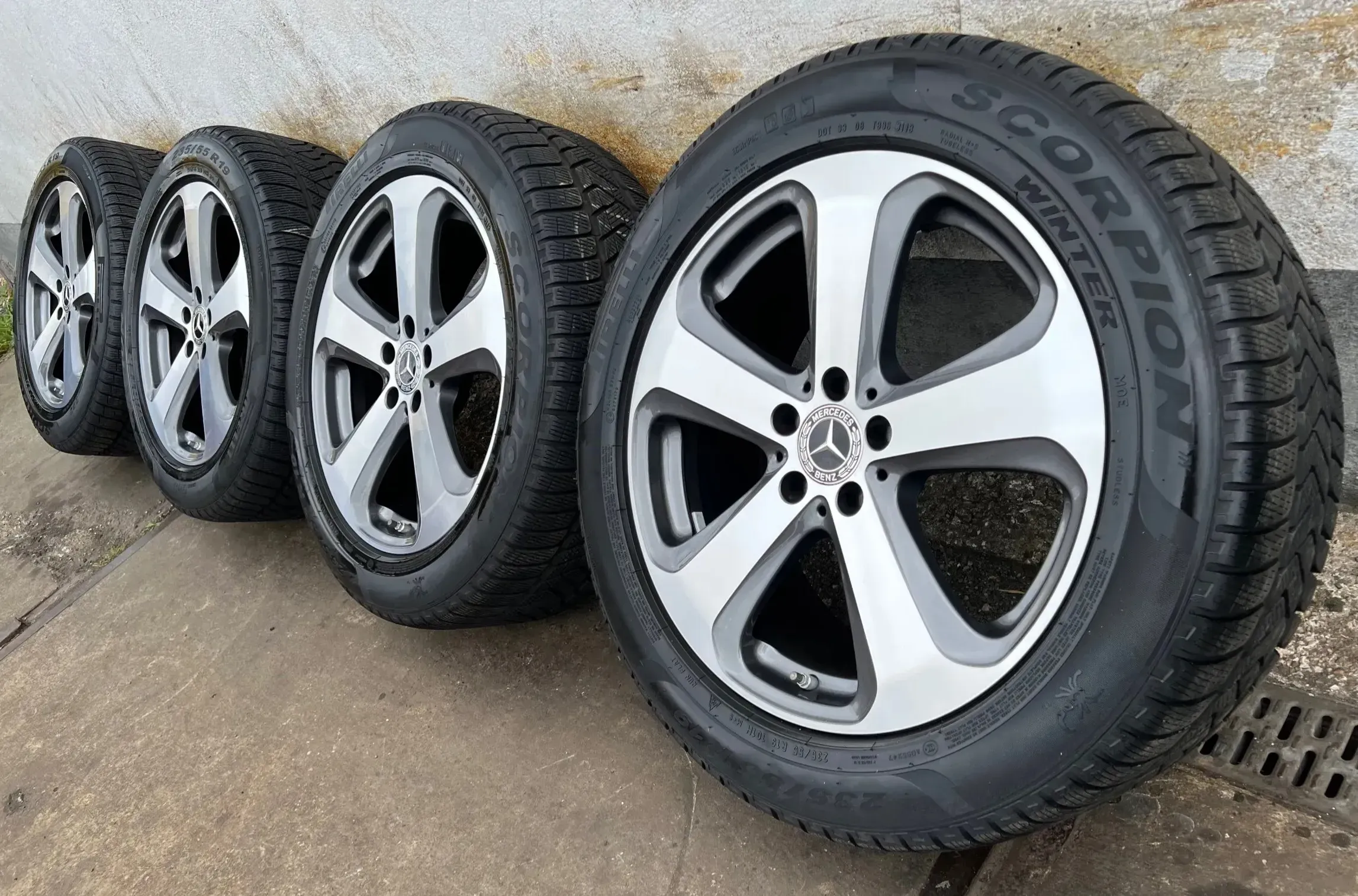 Angeboten wird ein gebrauchter originaler Mercedes Winterradsatz in 19 Zoll mit RDK Reifendrucksensoren.Optionale Hinweise zum Zustand: